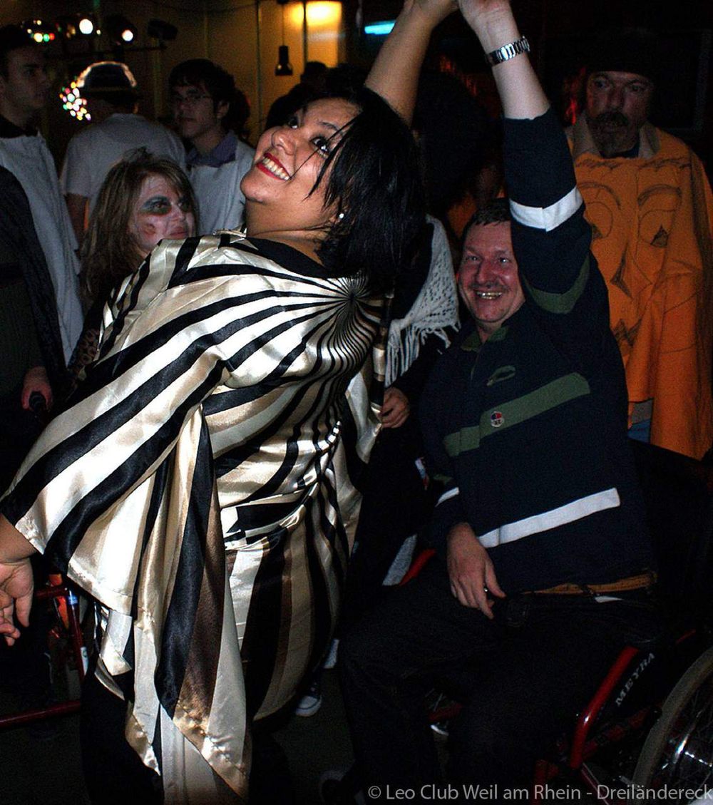 Halloween-Party war angesagt. Zehn Weiler Leos waren gekommen, um an dem Spektakel teilzunehmen. Und es war wie immer, wenn Heimleiter und DJ Bernd Sevecke zur Disco eingeladen hatte: Die Freude an der Musik und an der Bewegung war riesengroß. Neidlos mussten die jungen Leute aus Weil wieder einmal anerkennen, dass sie mit den besten Tänzerinnen und Tänzern unter den Heimbewohnern konditionell nicht mithalten können. “Ich bin fix und foxy”, hörte man Leo-Clubpräsidentin Leyla Kükner sagen, nachdem sie ein Stündchen auf dem Parkett verbracht hatte. Ihr Ehemann Murat, ebenfalls Leo, hielt doppelt so lange durch, aber mit den Ausdauernden der Männer und Frauen aus dem Haus “Dinkelberg” konnte auch er nicht bis zum Schluss Schritt halten.