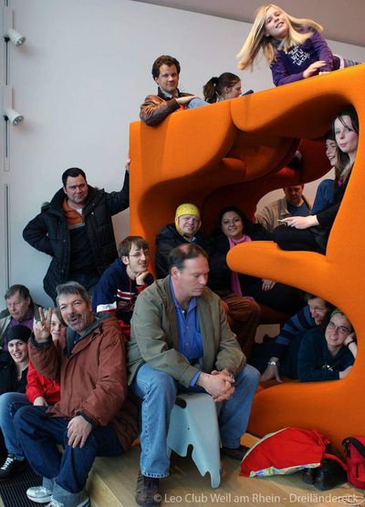 Die VitraHaus Tour war fantastisch! Wenige Wochen nach der Eröffnung des spektakulären Ausstellungshauses machten 22 Teilnehmer des Leo-Projekts “Begegnungen” einen eineinhalbstündigen Rundgang durch das viergeschossige Gebäude. Stühle, Sofas und Liegen in unterschiedlichstem Design und aus verschiedenen Epochen luden zum Verweilen und Ausprobieren ein.