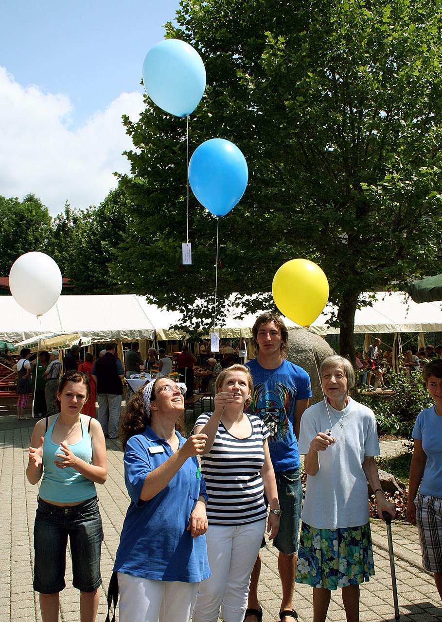 “Freunde treffen und helfen.” – Unter diesem Motto stand für die Weiler Leos ihr Arbeitseinsatz beim Sommerfest im Markus-Pfüger-Heim. Die Hauptaufgabe bestand darin, nach dem Mittagessen und nach dem Kaffee das Geschirr von den Tischen abzuräumen. Eine Knochenarbeit! Daneben waren Valentin & Co. an einem Stand für das Befüllen von Ballons mit Gas und der Motivation zur Teilnahme an einem Ballonwettbewerb zuständig. Dank eines Sponsors aus dem Umfeld der Leos, der für sie die Teilnahmegebühr von 50 Cent pro Ballon übernahm, beteiligten sich neben einigen Festgästen recht viele Heimbewohnerinnen und Heimbewohner mit sichtlichem Vergnügen an der Aktion. Es war immer wieder interessant, die Flugbahnen der steigenden Ballons zu verfolgen: Recht schnell erreichten sie eine stattliche Höhe und verschwanden in der Regel bereits nach wenigen Minuten aus dem Blickfeld.Nach dem Ende des Fests trafen sich die Leos noch mit einigen “Linde”-Bewohnern. Diesen war es ein Anliegen, Vorschläge für die nächsten gemeinsamen Unternehmungen zu machen.
