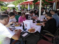 Zwischendurch blieb immer wieder mal Zeit, Erinnerungen an gemeinsame Unternehmungen auszutauschen. Sehr zur Freude von Doris, Jürgen, Tobias und einigen anderen hatte Leo-Club-Betreuer Gerhard sein Notebook dabei. Natürlich zeigte er die Fotos der vor neun agen zu Ende gegangenen gemeinsamen Hausbootfahrt im Elsass.