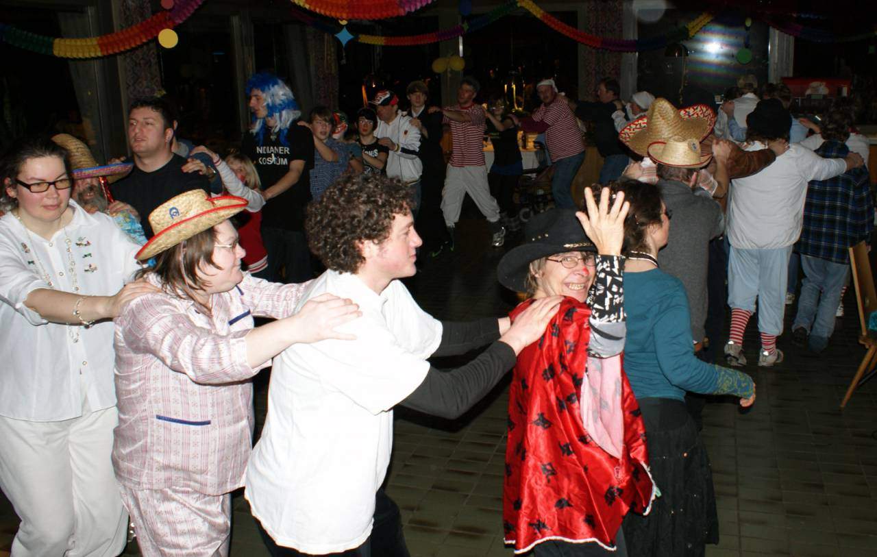 Die Fasnachtsdisco 2012, die auf Wunsch der Heimleitung in diesem Jahr nicht am Samstagabend, sondern unter der Woche stattgefunden hat, empfanden wohl alle Teilnehmer als sehr gelungen. Entscheidend dazu beigetragen hat, dass sich sehr viele Leute immer wieder zum Mitmachen auf der Tanzfläche motivieren ließen. Es wurde nie langweilig, auch nicht als zum fünften oder sechsten Mal eine Polonaise gebildet wurde. Alle Leos hatten den ganzen Abend lang gemeinsam mit den Heimbewohnerinnen und Heimbewohnern jede Menge Spaß und Lebensfreude – und das ist ja die beste Voraussetzung für eine gelungene Fasnachtszeit.