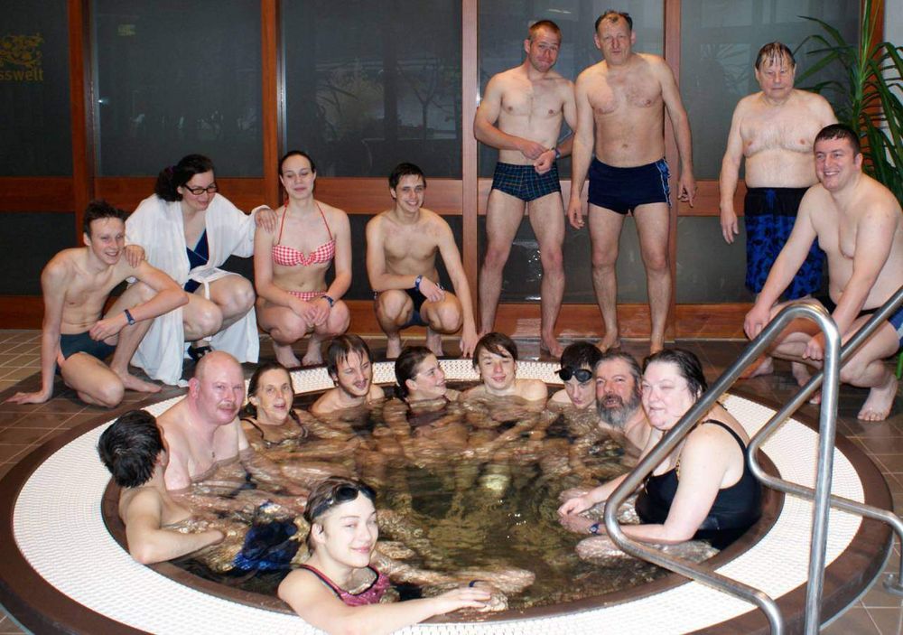 Nachdem zahlreiche Massagedüsen und die Luftsprudelliegen ausprobiert worden waren, fehlte es nicht am Mut, auch das kalte Wasser in der Wassertretanlage auszuhalten. Apropos Mut: Bewunderung fand bei den Leos ein Senior aus dem Pflegeheim, der sich in Begleitung als Nichtschwimmer ins Wasser traute und sich, mehr als er zuvor angenommen hatte, zum ersten Mal in seinem Leben am warmen Nass in einem Thermalbecken erfreute. Seine größte Freude war der gemeinsame Aufenthalt der ganzen Gruppe in einem kleinen Pool zwischen den Ruheräumen. Das mit grünlichem, natur belassenen Thermalwasser gefüllte Becken fanden alle so toll, dass man sich hier recht lange tummelte, bevor die Einen noch ins Dampfbad gingen und Andere dem Wiederholungsdrang bei diversen Wasserattraktionen in den Außenbecken nachgaben. Als man nach dem Baden noch eine Stunde bei einem mitgebrachten Vesper zusammen saß, kam das Gespräch unweigerlich auf die nächsten Vorhaben der unternehmungslustigen Gruppe: Am Nachmittag des ersten April wollen einige Heimbewohner die Leos bei der Ostereierpyramide im Rhein Center besuchen. Und Ende April geht’s beim Tretboot fahren auf dem Weiher von Courtavon im Elsass wieder aufs Wasser.
