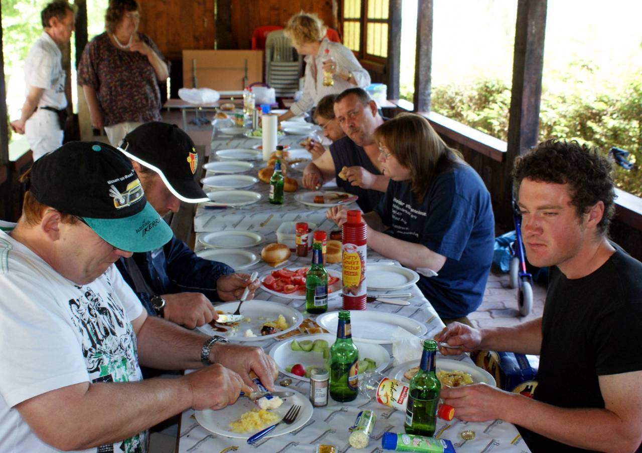 Mit dem 30-Sitzer-Bus führte die Fahrt über Basel, Delémont und Porrentruy nach Réclère. Nach der Ankunft beim Préhisto-Parc wurden Steaks auf dem Holzkohlegrill und Rösti auf dem Gasgrill zubereitet. Viele Hände halfen auch beim Herrichten der vielfältigen Beilagen. Alle genossen das Essen im Freien und saßen gut gelaunt lange beisammen.