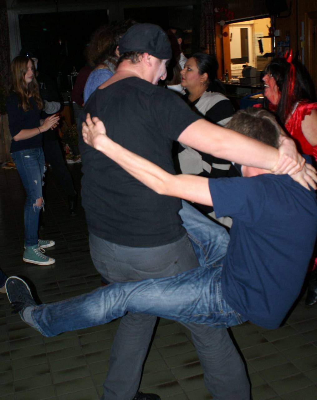 Dann lief die Musik auch schon an. Wie von alleine, als hätte ich keine Kontrolle über meinen Körper, fingen meine Beine an, rhythmisch mit der Musik zu schwingen. Nach und nach folgte der restliche Körper, sodass ich schon nach wenigen Sekunden tanzend auf der großen Parkettfläche neben allerlei unheimlichen Gestalten stand. Die Musik wechselte dabei oft den Stil und bot neben Klassikern auch moderne Hits von Lady Gaga oder Don Omar. Natürlich war das aber noch nicht alles. Denn keiner von uns hatte mit einem Liveauftritt zweier Weltstars gerechnet. Und das bei dieser Party „Untote“ mitmachten wurde uns allen spätestens dann klar, als Michael Jackson die Bühne betrat und uns allen mit seinen besten Hits mächtig einheizte. Doch auch Lady Gaga war mit von der Partie und buhlte um die Gunst der Zuschauer – was sie mit aufreizenden Szenen durchaus schaffte.Vielleicht sollte ich doch anmerken, dass beide Auftritte durch den erfahrenen Heimbewohner Jürgen performt worden sind. Nicht, dass noch Missverständnisse entstehen (Es fühlte sich aber sehr echt an!).