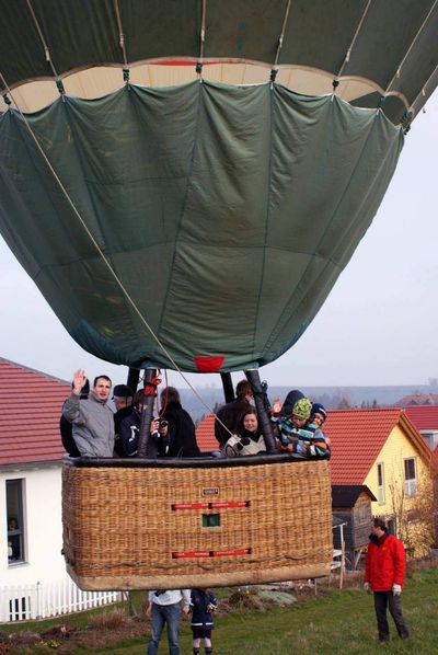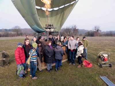 Herr Klank ermöglichte es uns, gleich zwei Ballonfahrten nacheinander zu machen, sodass wir zwei Gruppen mit acht bzw. neun Personen bilden konnten, Leos und Bewohner jeweils gemischt. Jede Gruppe durfte für ungefähr eine Stunde in der Luft bleiben und das Erlebnis Ballonfahrt genießen. Wo die Zwischen- und Endlandung erfolgen sollte, war zu Beginn des Abenteuers noch ungewiss.