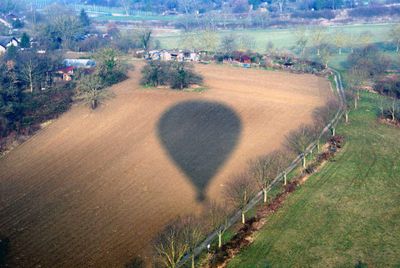 Oberhalb der Wolkengrenze lächelte uns dann zur Abrundung die Sonne an, die Temperaturen waren dank der ruhigen Windverhältnisse wärmer als auf dem Boden. Auch für spannende Momente war gesorgt, als wir bei der Fahrt einen großen Baum streiften und dann langsam wieder in die Höhe stiegen, auf über 1.000 Meter insgesamt. Nach einer Stunde frischer Höhenluft setzte der Ballon wohlbehalten wieder auf dem Boden auf. Durch Öffnen des Ventils an der Decke entwich die warme Luft sehr schnell und ließ den Ballon innerhalb weniger Minuten komplett in sich zusammensacken. Er wurde in die gleiche Plane eingerollt, aus welcher er am Morgen befreit wurde. Nun trafen auch Claudia mit dem Heimbus sowie einige andere Fahrer ein und transportierten uns zurück zum Flugplatz, von wo aus wir gestartet waren. Eine tolle Fahrt war beendet.