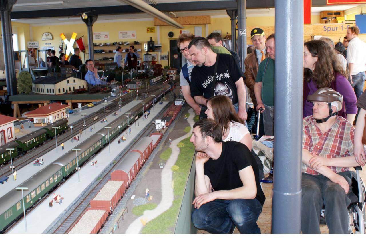 Es war ein tolles Erlebnis, sich die Anlage in Betrieb anzusehen und sich viele Details aus erster Hand erklären zu lassen. Einige Modellbauer plauderten aus dem Nähkästchen. – Unglaublich, wie viele Stunden Arbeit sie investieren, um Landschaften, Trassen und allerlei Bauten so naturgetreu wie möglich zu gestalten! Tobias von „Ahorn“ war nicht der Einzige, der an diesem Nachmittag mehrmals das Wort „Waaahnsinn!“ aussprach. Nach dem Eintauchen in die Modellbau-Welt suchte die Gruppe das speziell zum Tag der Offenen Tür eingerichtete Café auf. Bei Kaffee und Kuchen wurde viel geplaudert. Und natürlich wurde auch über die nächsten gemeinsamen Ausflüge gesprochen.