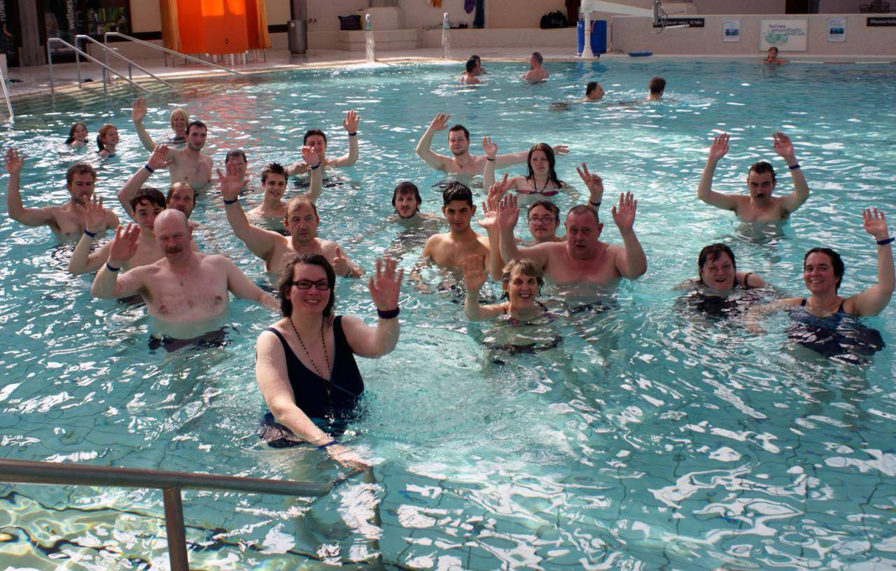 Der Aufenthalt in den diversen Innen- und Außenbecken verlief ebenso angenehm wie bei den beiden früheren Besuchen. Gemeinsam wurden das warme Wasser, Massagedüsen, Sprudelliegen und das Dampfbad genossen. Ja: Es war von A bis Z ein purer Genuss!Vor der Heimfahrt wurde noch das obligatorische Vesper eingenommen. Reißenden Absatz fanden dabei die mitgebrachten belegten Brötchen und diverse erfrischungsgetränke. Fazit: „Da waren wir ganz bestimmt nicht das letzte Mal!“