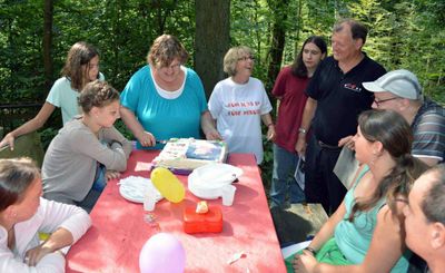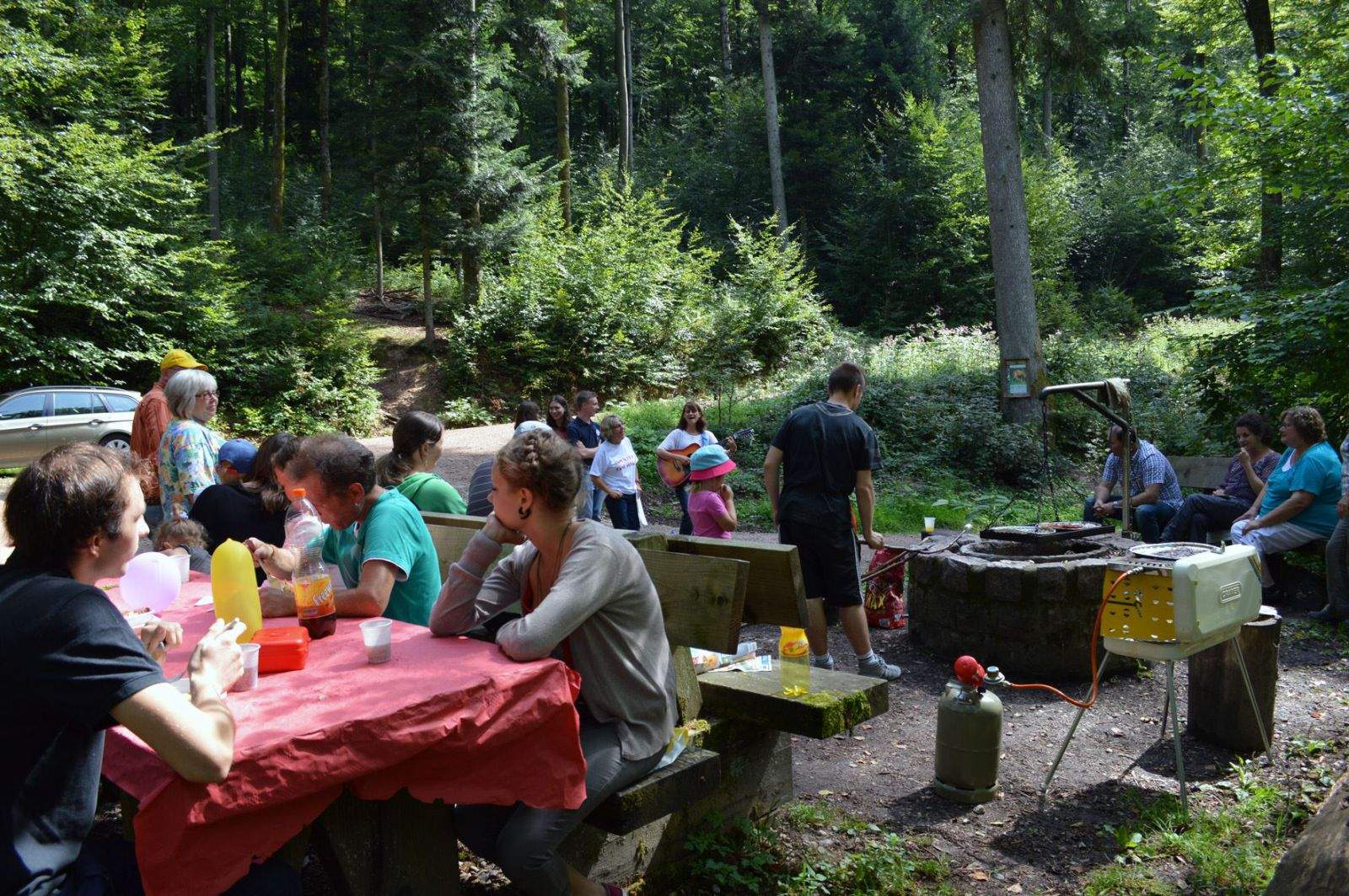 Eine ganz besondere Unternehmung im Rahmen der „Begegnungen“. Nicht die Leos hatten zu einem gemeinsamen Event eingeladen und alles dafür vorbereitet. Nein: Roswitha aus der „Linde“ hatte zu einem Fest bei der Dachshütte eingeladen, hoch oben auf dem Berg über Schopfheim-Langenau. Anlass war ihr 60. Geburtstag am Mittwoch zuvor.Roswitha hatte Familienangehörige, Freunde und die Weiler Leos eingeladen. Nach dem Mittagessen vom Grill und von einem Salatbuffet warteten die Leos mit zwei Überraschungen auf. Zunächst lud Tamara, eine Freundin von Inge, alle dazu ein, zur Musik ihrer Gitarre mitzusingen. Und dann wurde eine mit Roswithas Konterfei aus Marzipan verzierte große Torte überreicht, von der Jubilarin persönlich aufgeschnitten … und restlos verzehrt.Bei herrlichem Sommerwetter verbrachte man rund fünf Stunden zusammen. Ein naheliegendes Gesprächsthema war die Unternehmung des nächsten Monats: Eine Hausbootfahrt vom 3. bis zum 6. Oktober auf dem Rhein-Marne-Kanal von Lagarde nach Nancy und zurück. Möge das Wetter da auch so freundlich mitspielen!