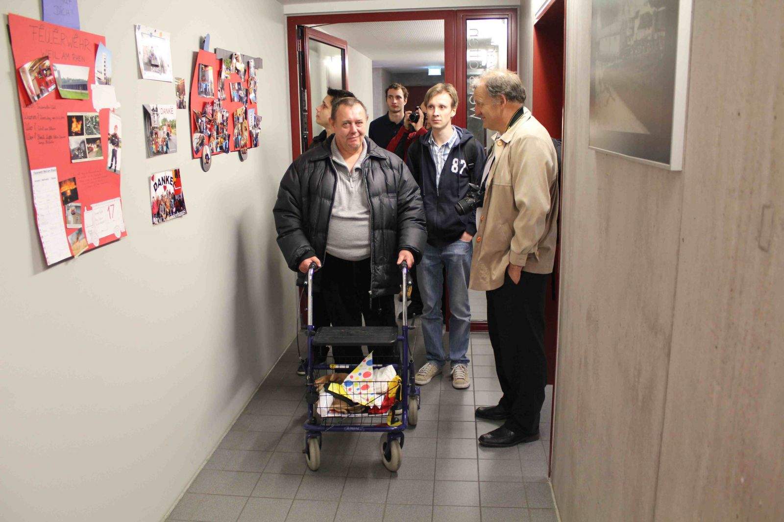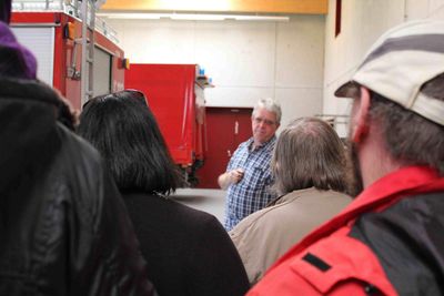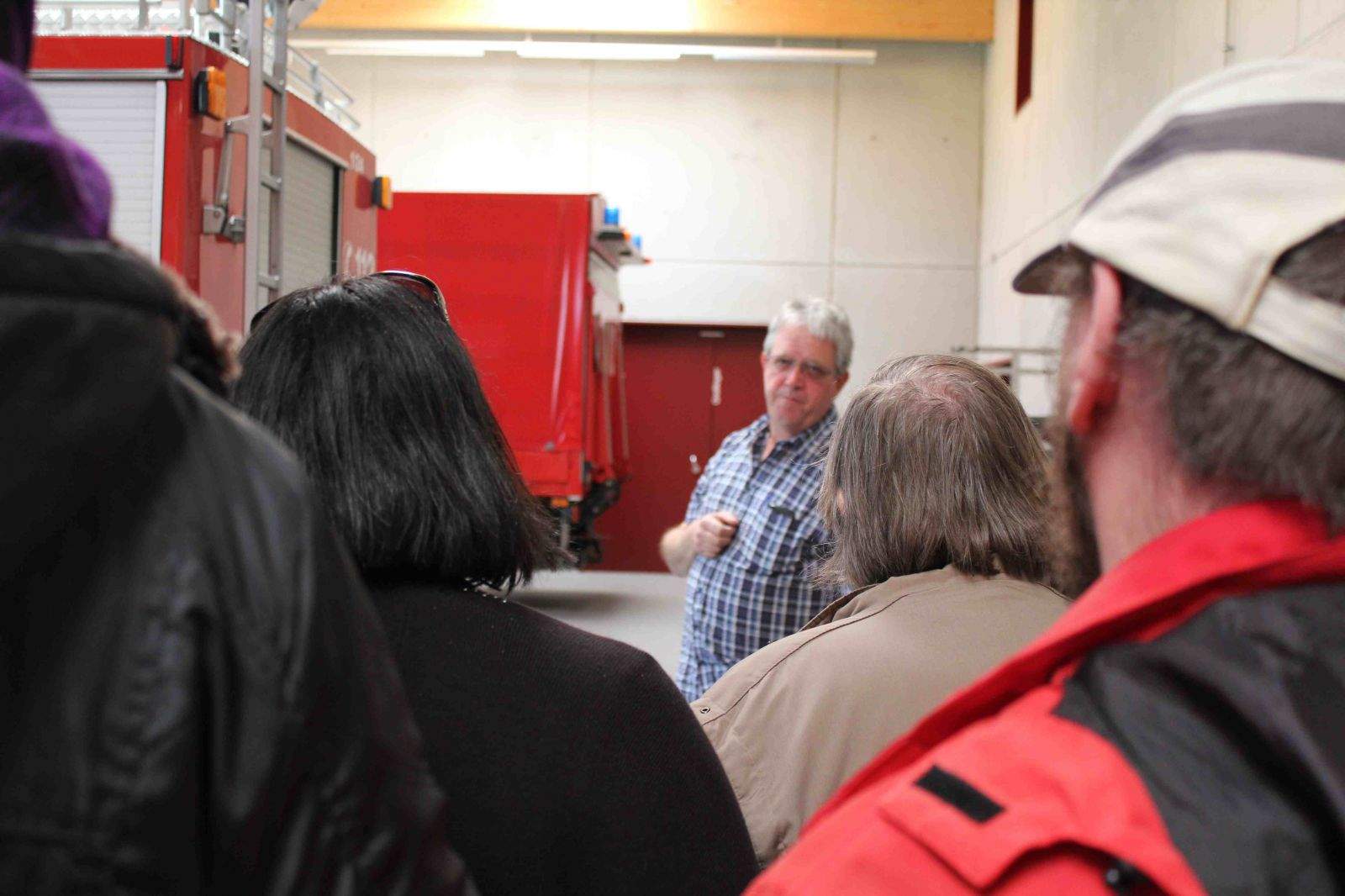 Bewohner und Leos waren gleichermaßen fasziniert von der Führung, welche durch Leo Valentin organisiert wurde. Die Feuerwehr ist und bleibt eine Faszination, nicht nur für kleine Jungen, welche vom Beruf des Feuerwehrmannes, des Retters in der Not, träumen. Doch neben dem Offensichtlichen – dem Löschen von Bränden und Retten von Menschen – macht die Feuerwehr noch vieles mehr: Lagerordnung betreiben, etwa. Ein Blick in das Lager zeigte uns, dass hier ein diszipliniertes System herrscht, welches es den Teams im Notfall ermöglicht, schnell die notwendigen Werkzeuge und Materialien aufzuladen. Ziel der Feuerwehr ist es, spätestens 10 Minuten nach Eingang des Notrufes vor Ort zu sein, sofern dieser nicht in allzu weiter Ferne liegt.