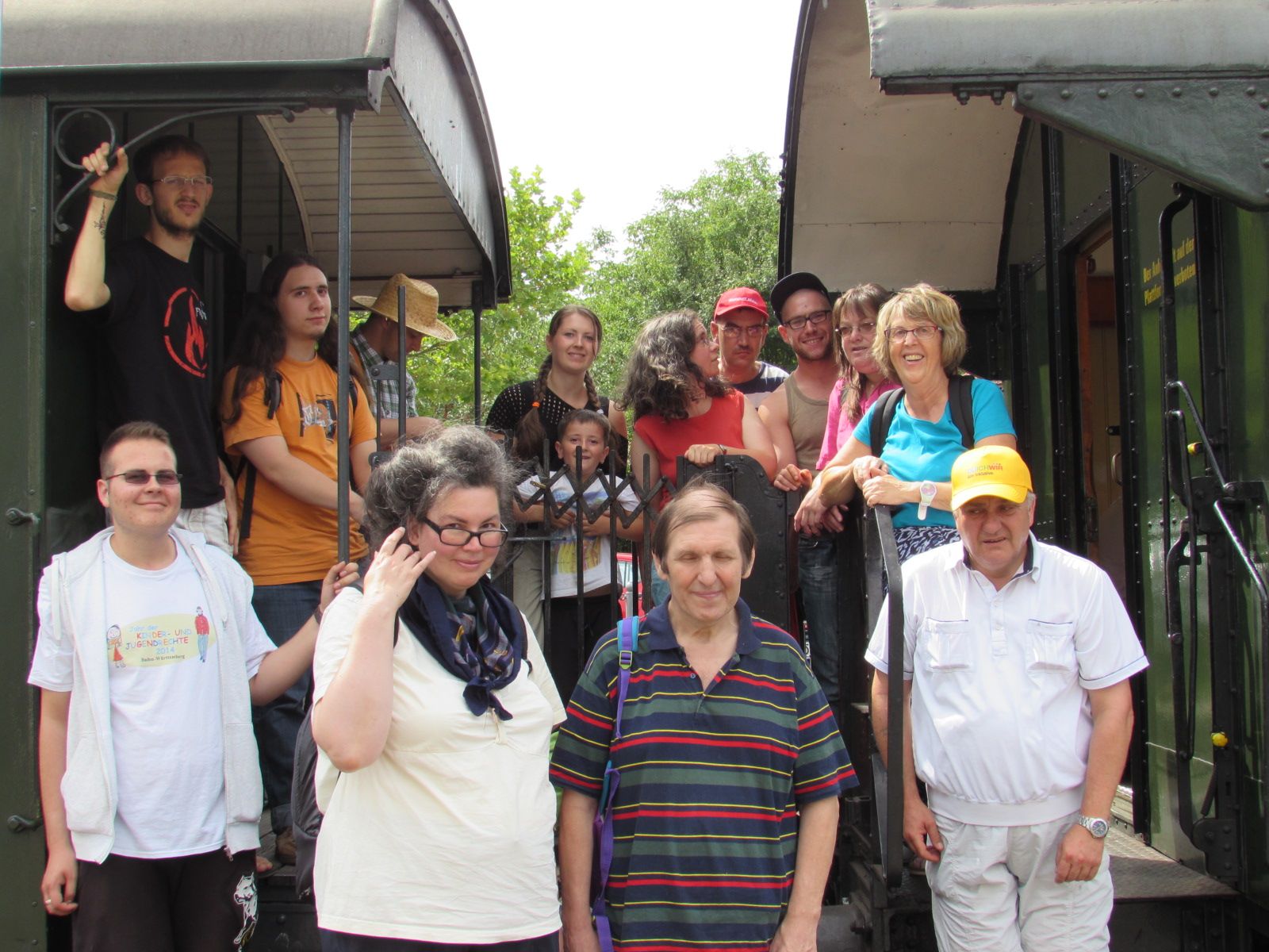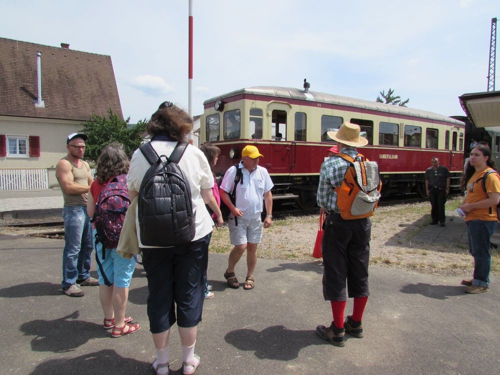 Am Sonntag, den 12. Juli 2015, unternahmen wir eine Kandertalbahnfahrt nach Kandern und zurück, zusammen mit den Bewohnern des Markus-Pflüger-Heims aus Wiechs. Treffpunkt war in Haltingen, von wo aus die historische und nur im Sommer fahrende Bahn startete.