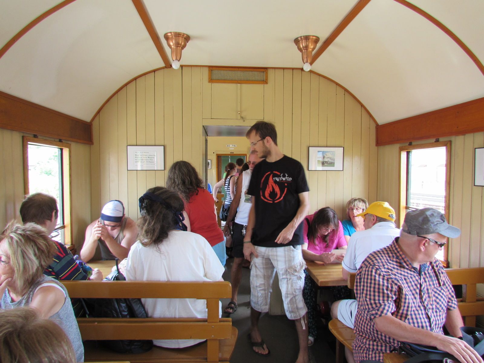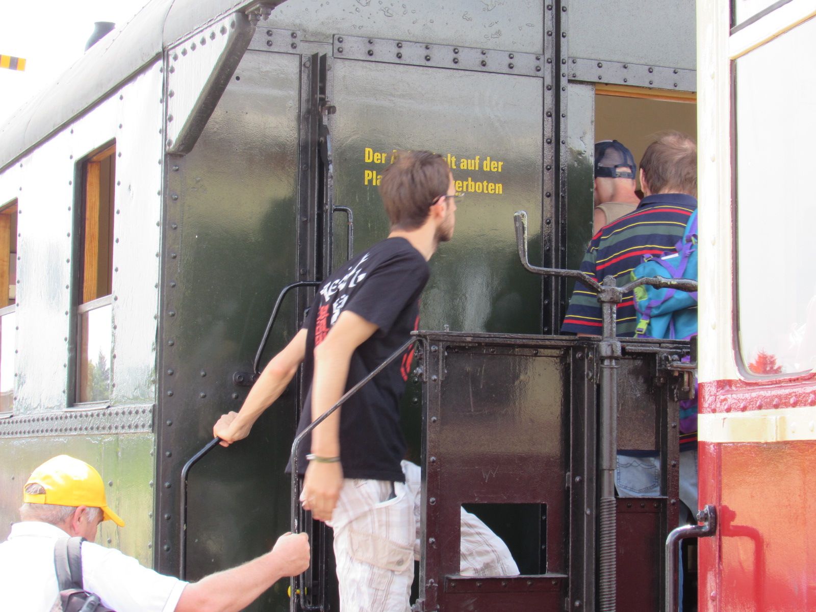 Auf der Rückfahrt konnten wir noch einmal das erlebte besprechen und die Fahrt selbst genießen. Aufgrund des heißen und trockenen Monats fuhr zwar nur die Diesellokomotive (die Dampflokomotive würde zu viel Funkenflug verursachen und die Brandgefahr erhöhen), ein Erlebnis war die Fahrt aber dennoch. Nach kurzweiligen 3 Stunden waren wir dann wieder in Haltingen und mussten Abschied nehmen, zumindest bis zur nächsten Aktion.