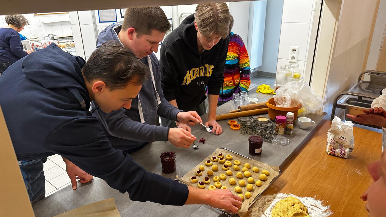 Insgesamt wurden mehrere Backbleche voller Plätzchen in gesellschaftlicher Zusammenarbeit zubereitet. Das Endprodukt wurde anschließend abgepackt und an das Jugendhaus in Friedlingen gespendet – natürlich nicht ohne eine gründliche Kostprobe. Nach getaner Arbeit und dem Aufräumen der Küche saßen Leos und Bewohner noch für einige Minuten in großer Runde zusammen, tauschten sich über verschiedenste Themen aus und nahmen dann, nach rund 4 Stunden, Abschied voneinander.