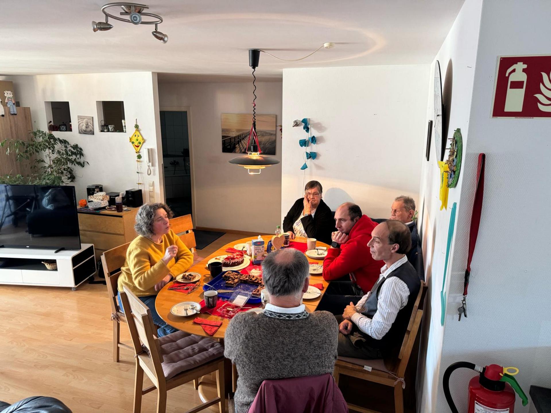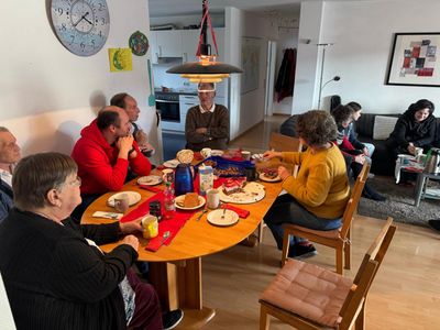 Volle Hütte - so oder so ähnlich könnte man den vergangen Sonntag in Schopfheim beschreiben, denn die Wohnung der Wohngruppe Linde war bis auf den letzten Platz gefüllt. Grund dafür war der Besuch der Leos, die sich mit den Bewohnern zum Kaffee und Kuchen trafen. Bei lockerer Atmosphäre wurde der Nachmittag verbracht, wobei die Bewohner die Gelegenheit nutzten, um sich über die vergangenen Wochen und Feiertage auszutauschen. Der selbstgebackene Kuchen und die frisch gebrühten Kaffeespezialitäten rundeten den Nachmittag ab.