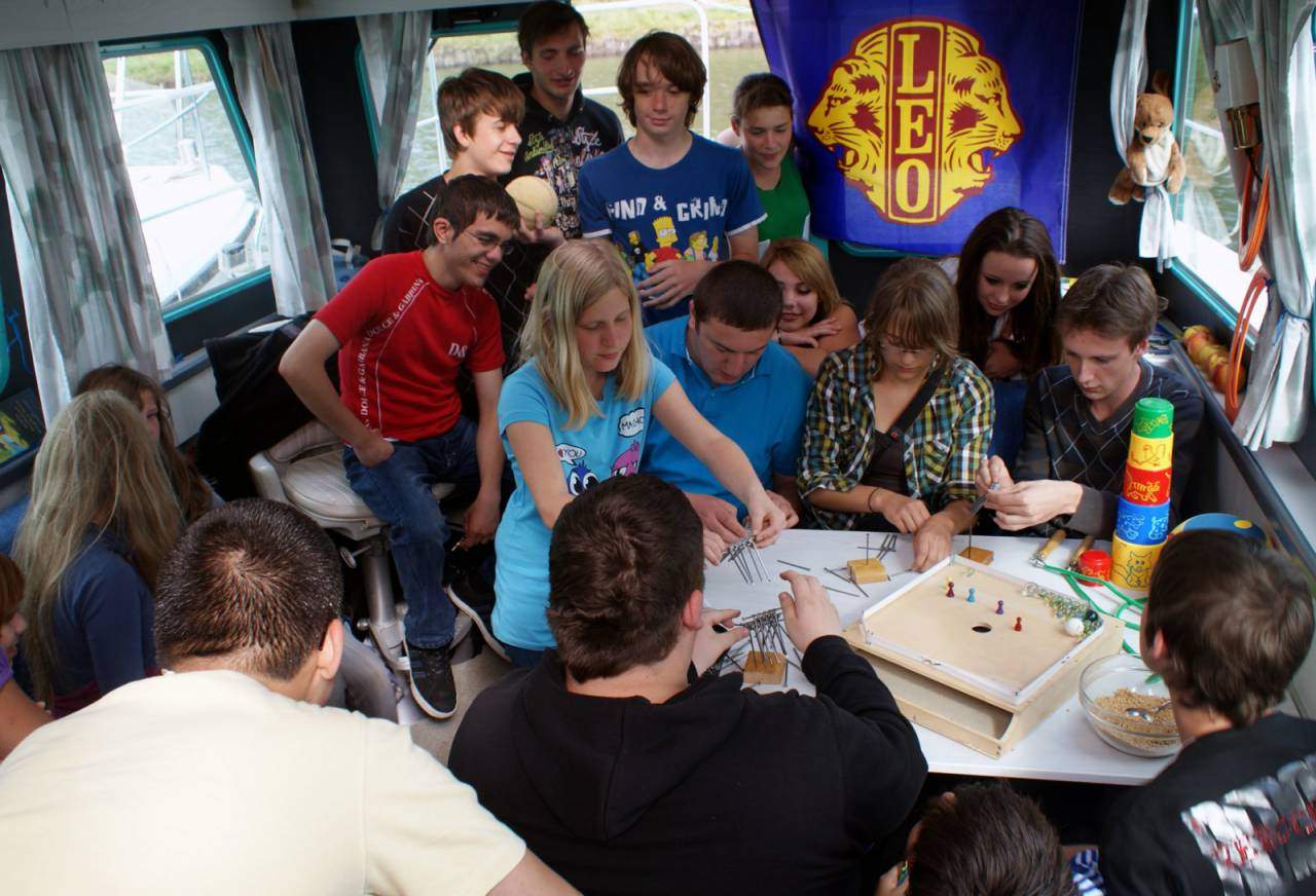 Elf Mitglieder des Weiler Leo-Clubs ermöglichten 15 Kindern suchtkranker Eltern aus dem Landkreis Lörrach ein außergewöhnliches Freizeiterlebnis. Vier Tage befuhren sie mit drei großen Hausbooten zwei Kanäle im Elsass.Gleich nach Fahrtbeginn in Niderviller gab es viel zu Staunen: beim Durchfahren von zwei langen Tunnels und dem Passieren des Schiffshebewerks von Arzviller. Zehnmal war beim Schleusen gutes Teamwork gefragt – und es hat jedes Mal alles geklappt! Gut gefallen hat es vor allem den Jungs, dass jeder, der wollte, mal selbst steuern durfte.Auch das Zusammenleben auf engem Raum bereitete zu keinem Zeitpunkt Probleme. Man verstand sich auf Anhieb, kochte und speiste zusammen, spielte, scherzte und redete viel und genoss gemeinsam ein abwechslungsreiches Freizeitprogramm.