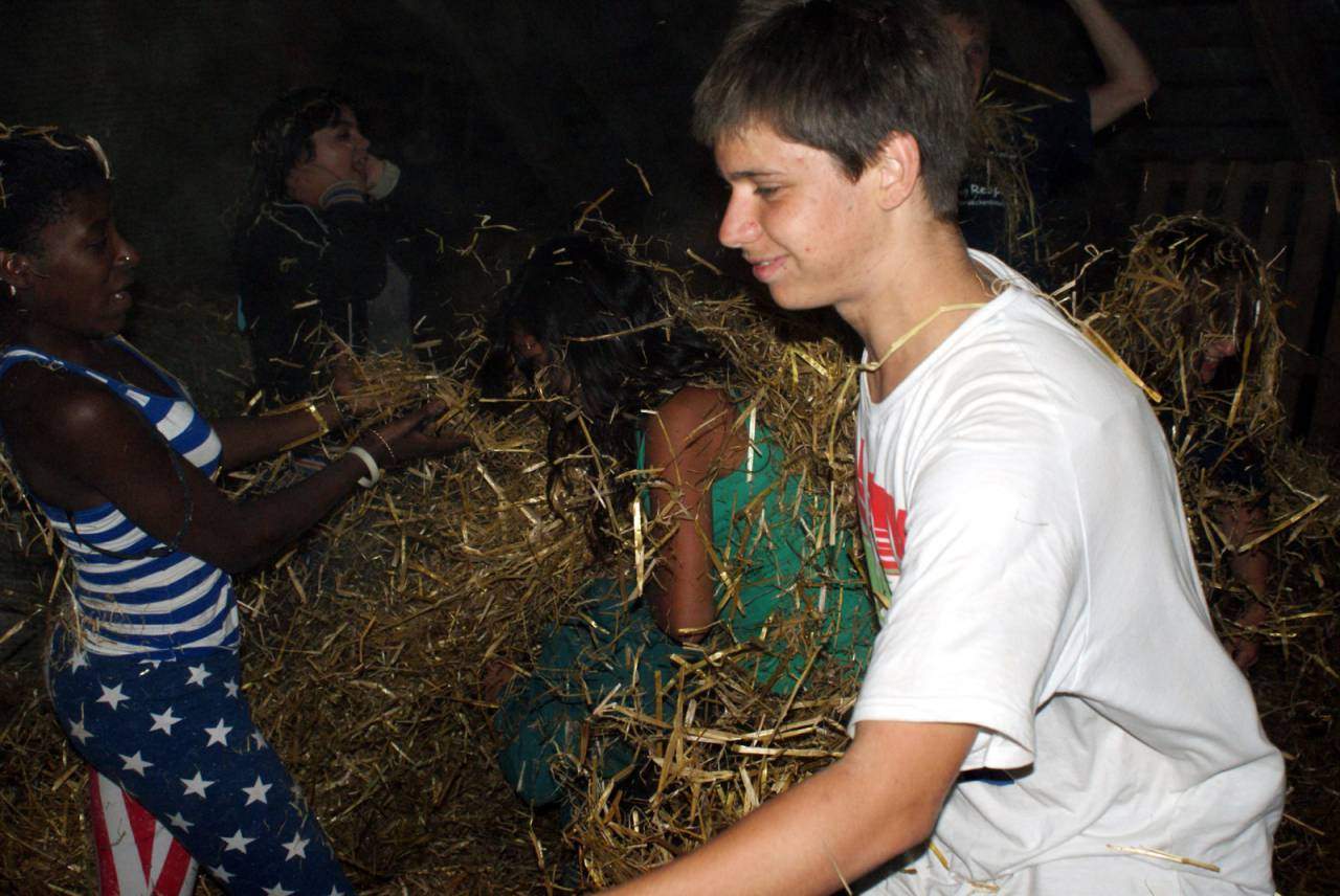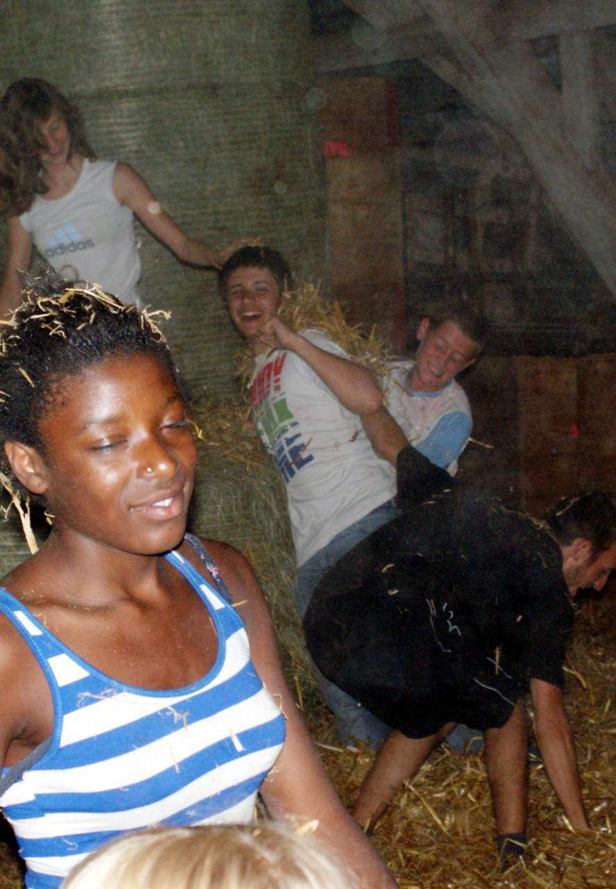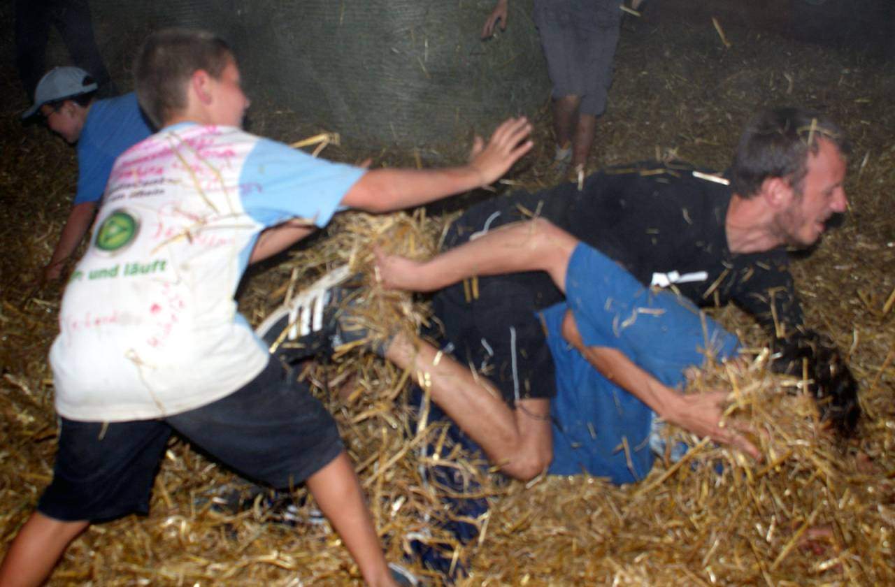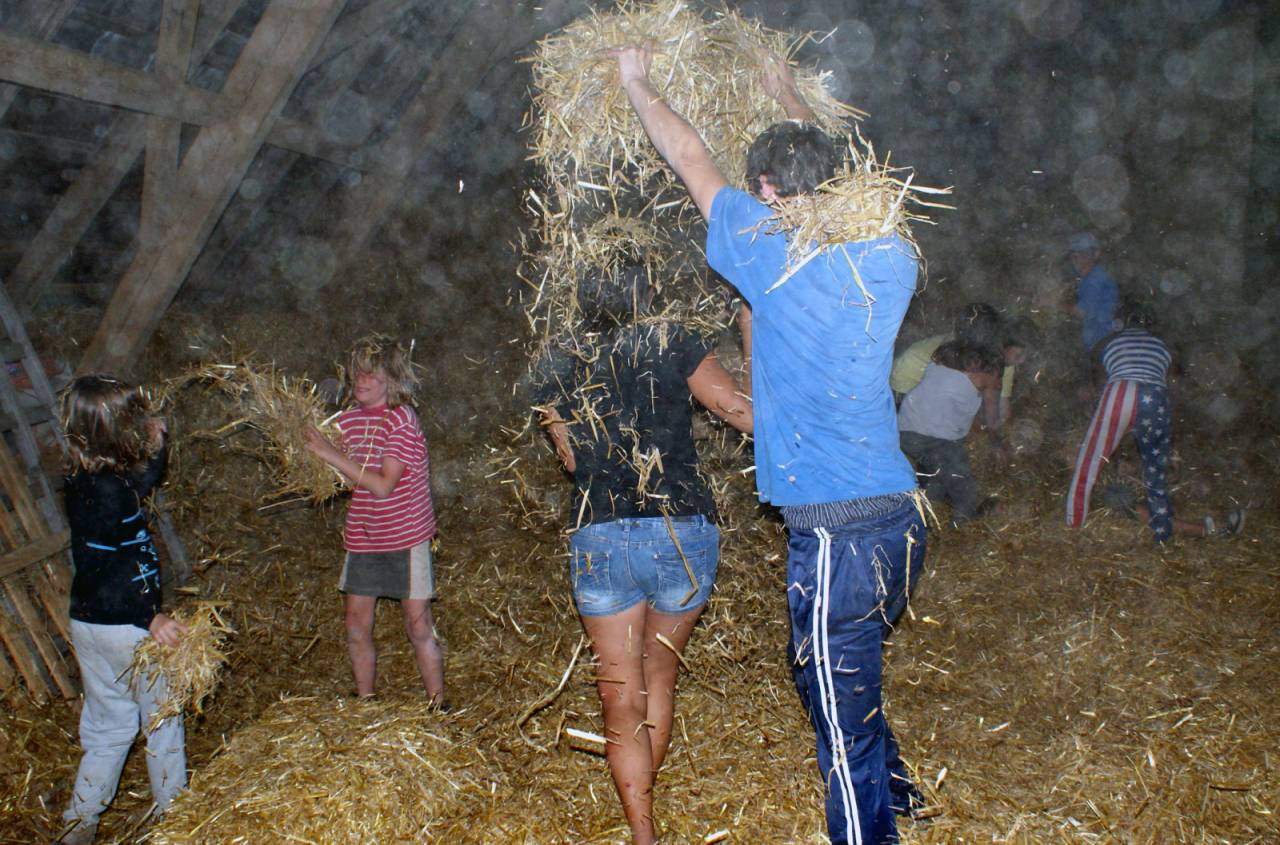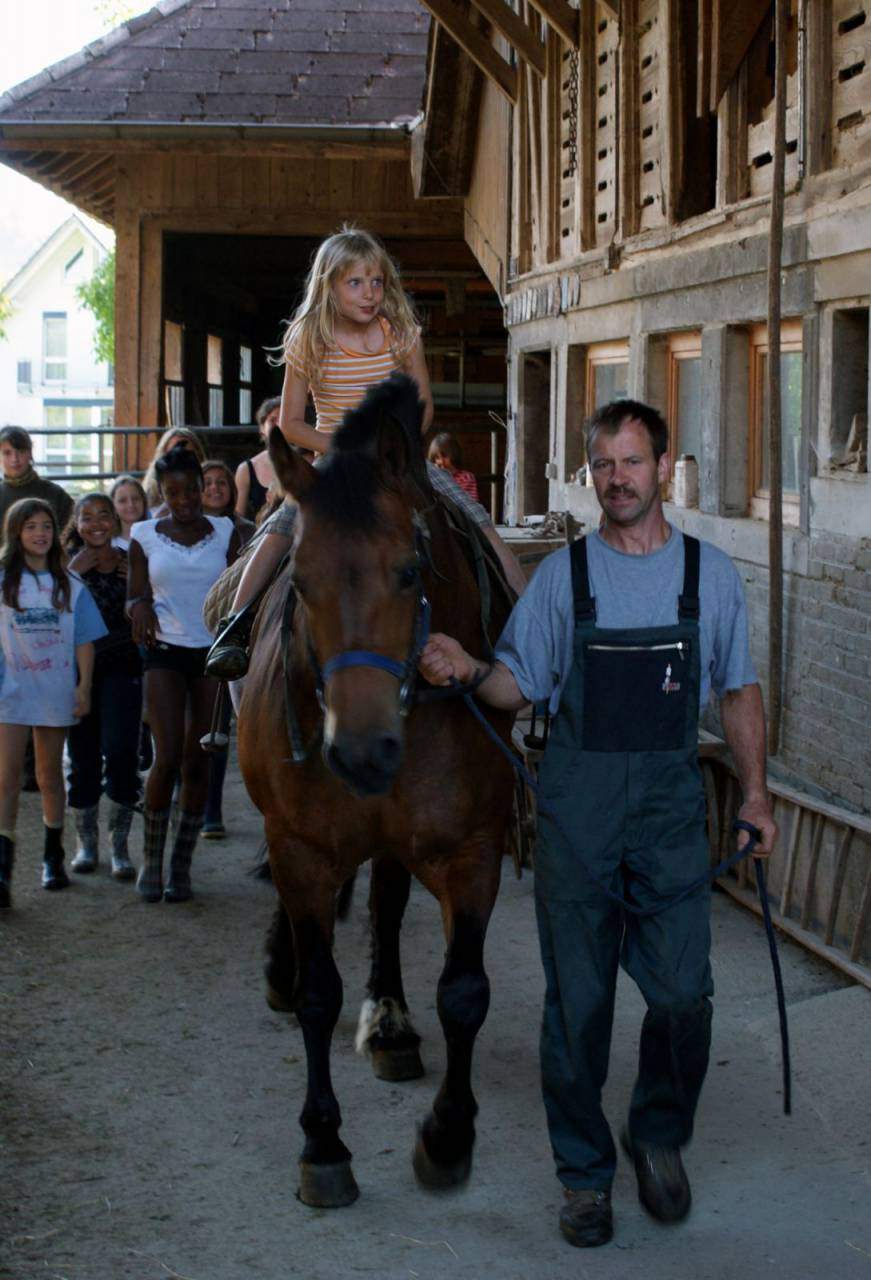 Auch das Reiten auf dem Pferd „Flora“ ließ sich fast niemand entgehen. Zwei große Runden lang musste das Tier nacheinander etwa 30 Leute tragen, wodurch es am Ende sichtlich erschöpft war. Dafür kamen viele Kinder in den Genuss, auf dem Rücken eines großen Kaltblüters zu sitzen und einmal größer als die anderen zu sein. Im Grunde kann man stundenlang über die Erlebnisse in Huttwil erzählen und findet doch immer wieder neue Sachen. Dieser Bericht soll nur einen Eindruck von dem vermitteln, was wir in diesem Jahr erlebt haben. Fakt ist, dass die Zeit unglaublich schnell vergangen ist und viele Teilnehmer gerne noch eine Woche länger dort verbracht hätten. Der letzte Tag wurde gebührend mit einer großen Strohschlacht gefeiert, bei welcher wirklich niemand unverschont geblieben ist. Am Ende befand sich das Stroh wirklich überall, selbst in den Socken kratzte und juckte es. So verabschiedet man sich doch gerne!