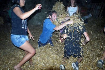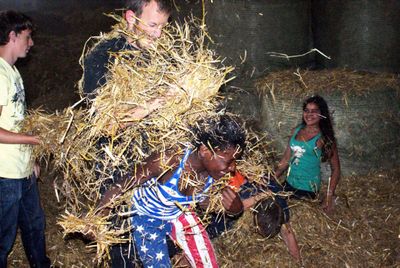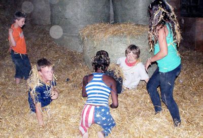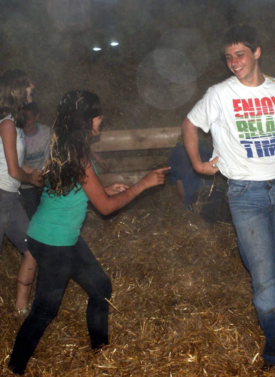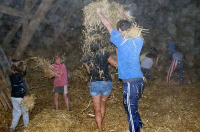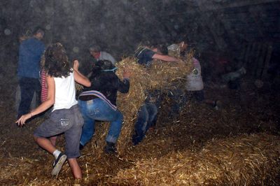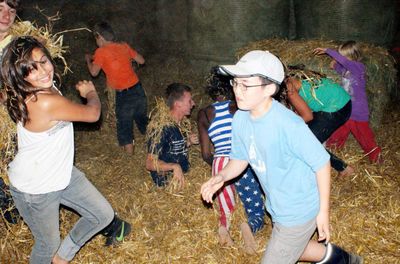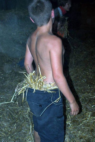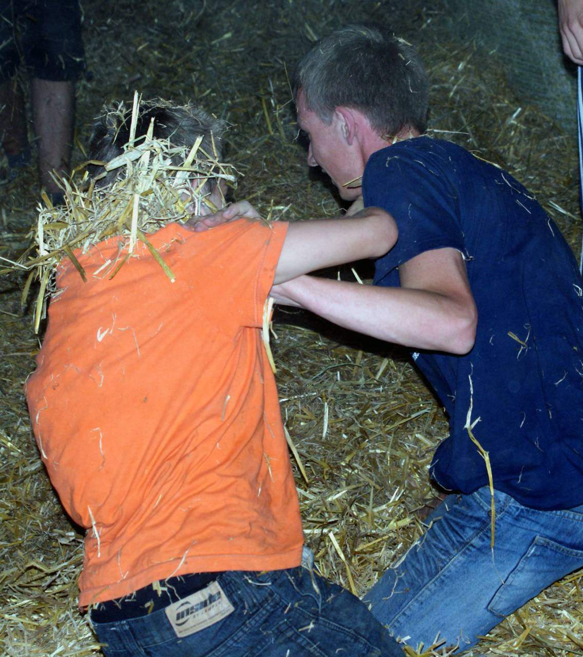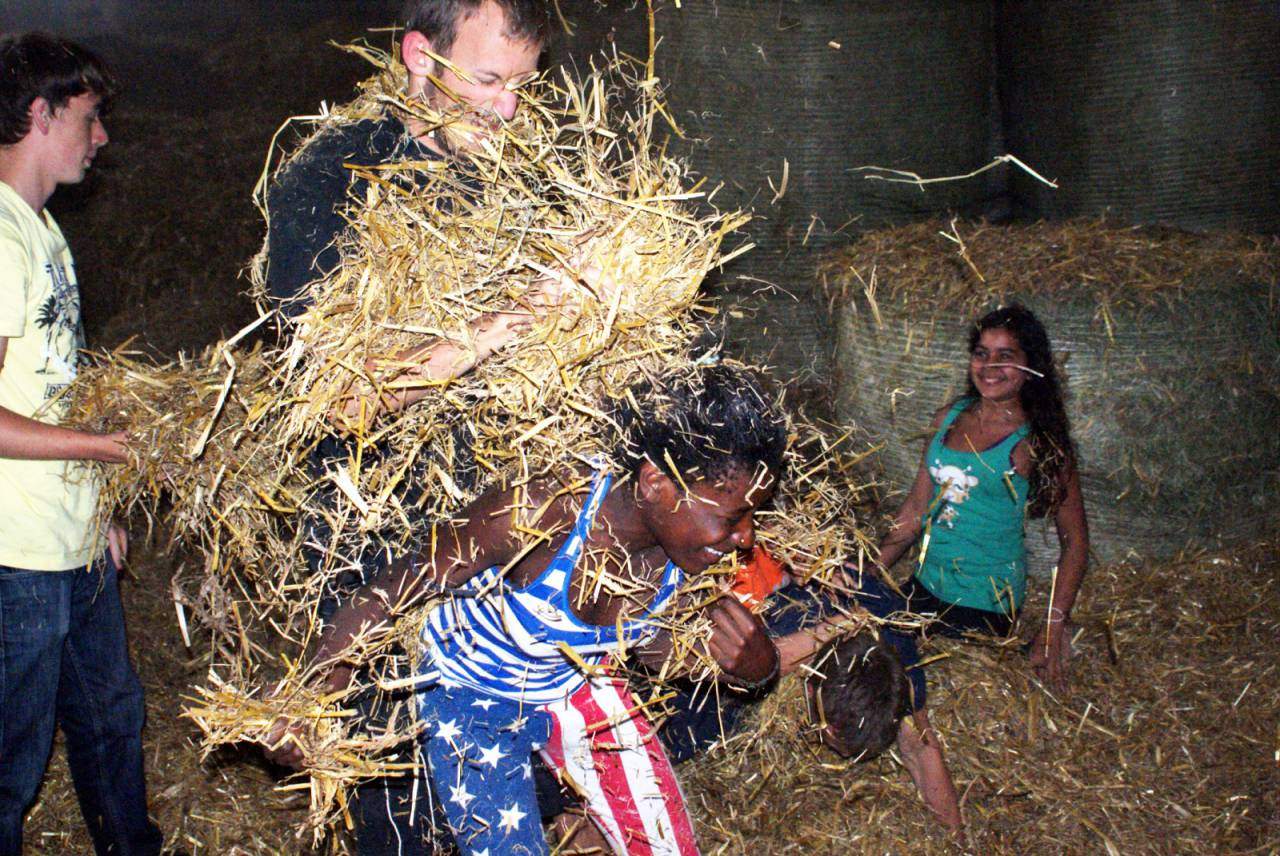 Auch das Reiten auf dem Pferd „Flora“ ließ sich fast niemand entgehen. Zwei große Runden lang musste das Tier nacheinander etwa 30 Leute tragen, wodurch es am Ende sichtlich erschöpft war. Dafür kamen viele Kinder in den Genuss, auf dem Rücken eines großen Kaltblüters zu sitzen und einmal größer als die anderen zu sein. Im Grunde kann man stundenlang über die Erlebnisse in Huttwil erzählen und findet doch immer wieder neue Sachen. Dieser Bericht soll nur einen Eindruck von dem vermitteln, was wir in diesem Jahr erlebt haben. Fakt ist, dass die Zeit unglaublich schnell vergangen ist und viele Teilnehmer gerne noch eine Woche länger dort verbracht hätten. Der letzte Tag wurde gebührend mit einer großen Strohschlacht gefeiert, bei welcher wirklich niemand unverschont geblieben ist. Am Ende befand sich das Stroh wirklich überall, selbst in den Socken kratzte und juckte es. So verabschiedet man sich doch gerne!