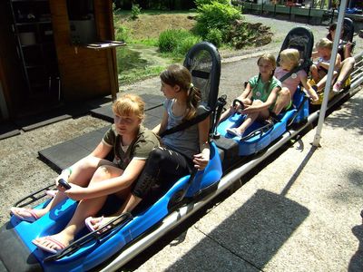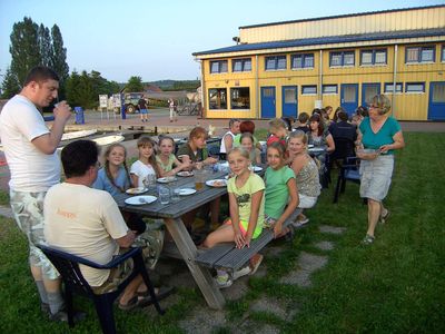 Nach den ersten zwei Fahrtstunden, in denen die Gruppe zwei lange Tunnels durchfuhr, sorgte ein längerer Aufenthalt auf einer Sommerrodelbahn für großes Vergnügen. Ebenso das Herumtollen in verschließbaren Plastikkugeln auf einer Wasserfläche. Zu einem weiteren Höhepunkt im Beiprogramm avancierte ein längerer Badeaufenthalt im Weiher von Gondrexange. Und sehr zur Freude der Leos gefiel es den jungen Mädchen, immer wieder mal ein Liedchen zu singen.