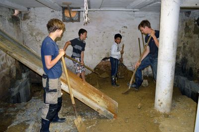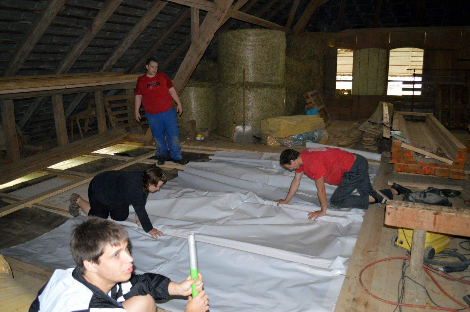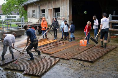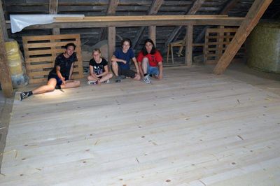 Das ideale Wetter bot mit sonnigen, heißen Tagen auch etwas Regen und damit die optimale Abkühlung für die anstrengenden Arbeiten. Dazu gehörte auch die Fertigstellung des Bodens in der Scheune, in welcher wir jedes Jahr im Stroh schlafen. Seit einigen Jahren ist es inzwischen unsere Aufgabe, den Boden Stück für Stück zu erneuern und damit zur Instandhaltung des alten Gebäudes beizutragen. In diesem Jahr wurde diese Aufgabe nun erfolgreich abgeschlossen.