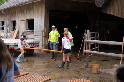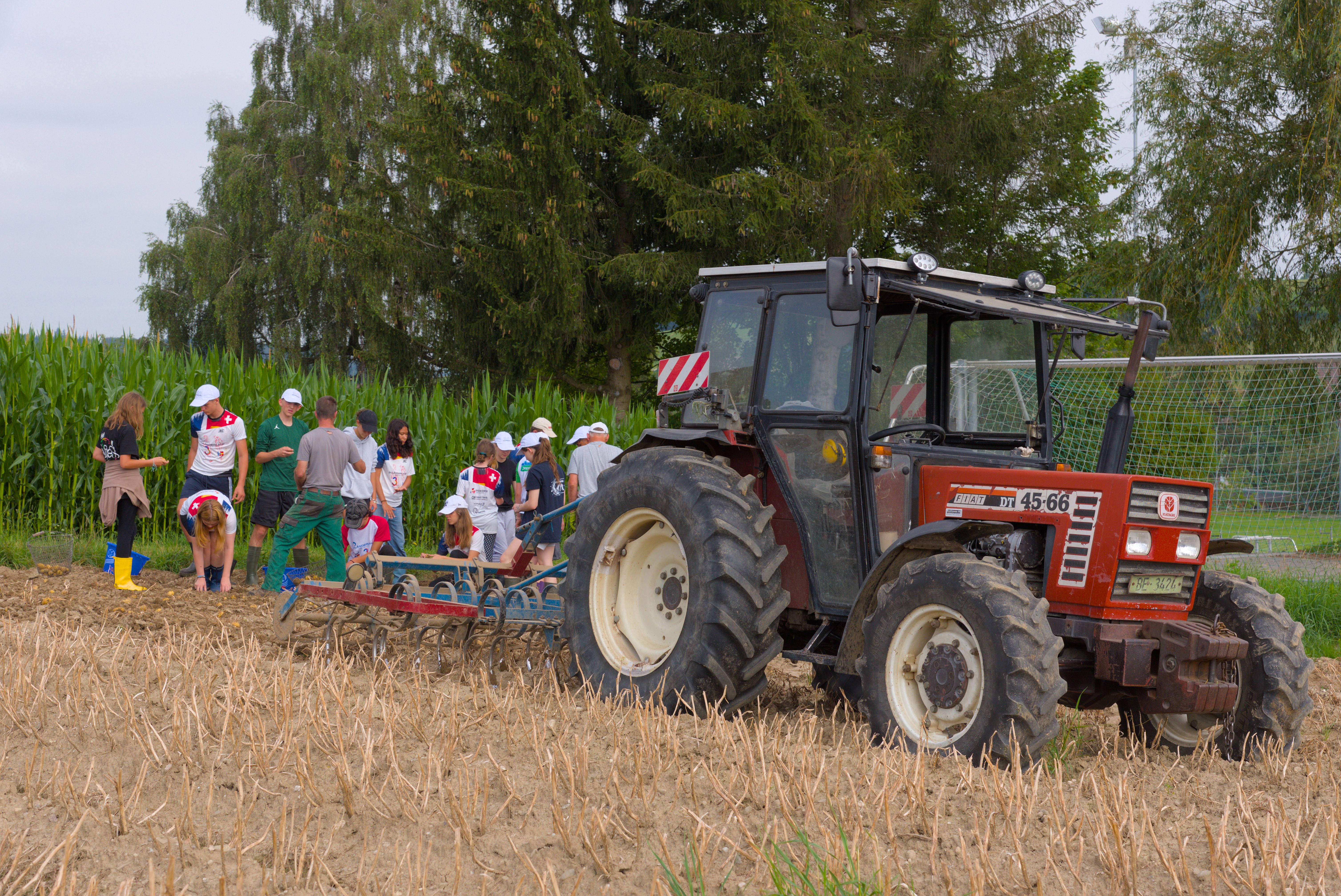 Doch der Reihe nach: Der erste Tag war gezeichnet vom Ankommen und gegenseitigen Kennenlernen. Neben vielen bereits bekannten Teilnehmern kamen auch ein paar neue Gesichter dazu, welche sich erst einmal auf dem Bauernhof zurechtfinden mussten. Nachdem das Strohlager eingerichtet und die Feldküche der Leos aufgebaut wurde ging es bereits mit ein paar ersten Freiwilligen aufs Feld um Strohballen einzusammeln. Ein leichter, aber typischer Einstieg in das Sommercamp.