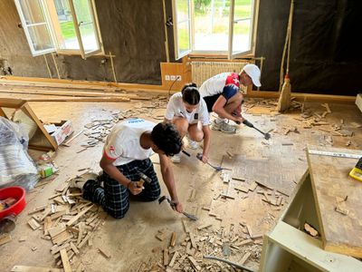 Ein weiteres Highlight war die Entkernung eines alten Hauses, welches zu dem Bauernhof gehörte. Die in die Jahre gekommene Inneneinrichtung mitsamt Decken, Wänden und Fußböden musste komplett entfernt und abtransportiert werden. Mit Hammer, Meißel und purem Willen bepackt machten sich die Jugendlichen daran, die Möbel und Einrichtung Stück für Stück zu zerlegen. Es war laut und anstrengend, sorgte aber auch für viel Spaß und gute Laune. Wo sonst bekommt man die Gelegenheit, mit einem Vorschlaghammer so lange auf eine Sitzbank einzuschlagen, bis diese in Einzelteilen vor einem liegt?
