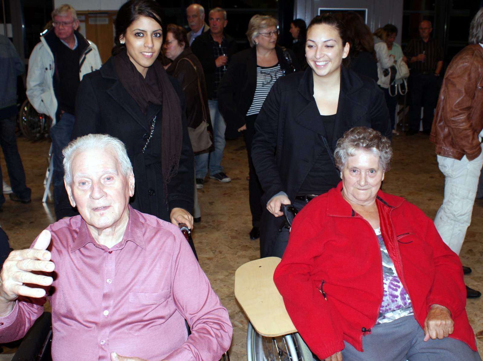 Von Zeit zu Zeit wird bei den Leos nachgefragt, ob einige dazu bereit sind, Leute aus dem Pflegeheim Markgräflerland in Rollstühlen zu Veranstaltungen außer Haus zu schieben. Ein Beispiel: Am 12.10.2011 gehörten fünf Leos zu einer Gruppe von Helfern, die eine muntere Schar von Heimbewohnern vom Pflegeheim zum rund einen Kilometer entfernten Haus der Volksbildung schoben. “Dr bluddi Wahnsinn!”, hieß die Komödie, die vom Mundart-Theater Kultimo gespielt wurde.