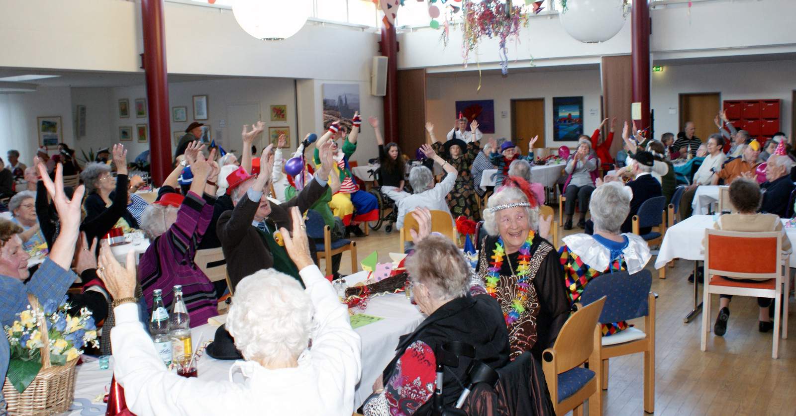 Lange vor dem offiziellen Beginn um 14.44 Uhr hatte sich am Fasnachtsdienstag die Caféteria “Weiler Stuben” im Pflegeheim Markgräflerland mit Heimbewohnern, Gästen und Mitarbeitern gefüllt. Den ganzen Morgen lang hatte eine Schar ehrenamtlicher Helfer den Raum liebevoll für das närrische Treiben hergerichtet. Mit dabei: fünf Leos und drei Praktikanten des Leo-Clubs.