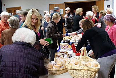 Leyla & Co. haben am Nachmittag 120 Brötchen belegt, einige Kuchen gebacken und alles bestens vorbereitet. Eine Stunde vor der Vorstellung sind drei Verkaufsstände vollständig eingerichtet, zwei mit Getränken und einer mit Essen. Und die rund 250 Theaterbesucher nutzen das Angebot rege. Vor allem in der Pause haben wir alle Hände voll zu tun. Welch ein Glück!