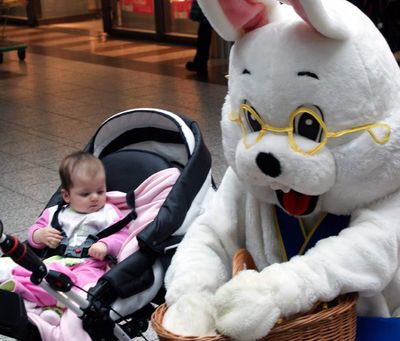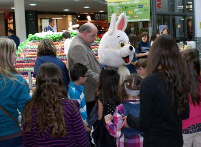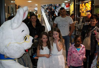 Der gesamte Verkauf ging in diesem Jahr sehr schnell vorbei. Statt wie erwartet am Donnerstag, bauten wir die Pyramide bereits am Mittwochabend ab, da zu diesem Zeitpunkt bereits alle Eier verkauft waren. Der Osterhase hingegen lief am Donnerstag und am Samstag erneut durch das riesige Einkaufscenter, dann hatte auch er wieder für ein Jahr Urlaub.